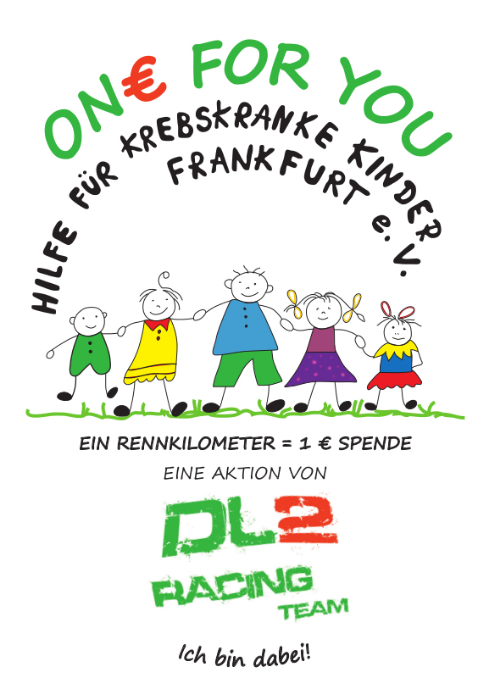 Aus diesem Grund werden wir – das DL2Racing Team – pro gefahrenen Renn-Kilometer einen Euro zugunsten der Organisation "Hilfe für krebskranke Kinder Frankfurt e. V." investieren.